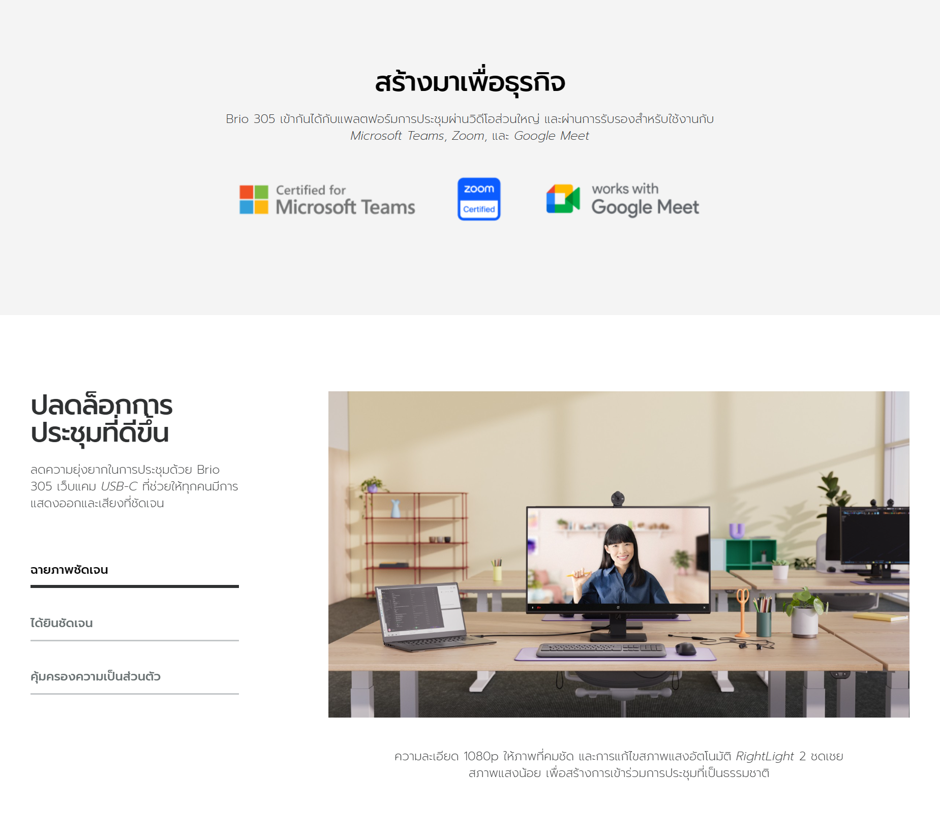ปรับสมดุลความสว่าง ปรับความเปรียบต่าง และชดเชยสภาพแวดล้อมที่แสงมีความท้าทายโดยอัตโนมัติ เพื่อสร้างการนำเสนอที่เป็นธรรมชาติ