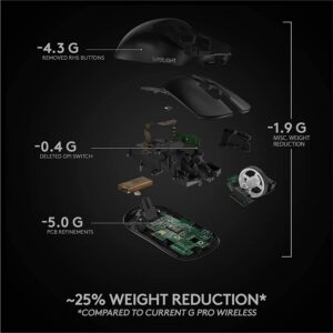 PRO X SUPERLIGHT คือเมาส์ PRO ที่เบาที่สุด ซึ่งใช้ความก้าวหน้าทางวิศวกรรมในการออกแบบให้เหลือน้ำหนักไม่ถึง 63 กรัม นับว่าเบากว่าเมาส์ไร้สาย PRO มาตรฐานถึงเกือบ 25% เป้าหมายนี้บรรลุได้ผ่านการออกแบบอย่างพิถีพิถัน เพื่อลดน้ำหนักลงมากเป็นพิเศษ โดยไม่ลดทอนประสิทธิภาพใด ๆ