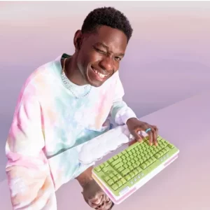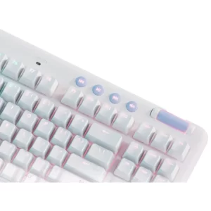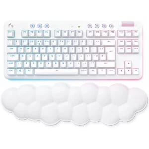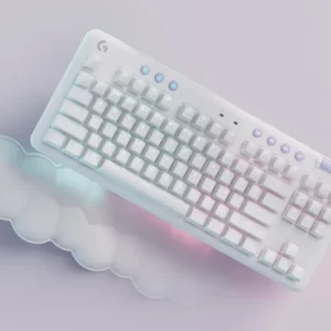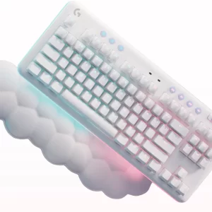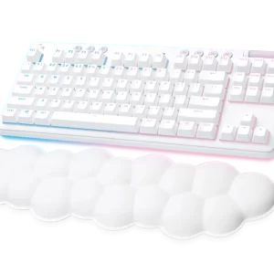 G715 จาก Aurora Collection คือคีย์บอร์ดไร้สายเกรดเกมมิ่ง LIGHTSPEED และ Bluetooth® ที่ออกแบบมาเพื่อความสบายที่มาพร้อมกับที่วางพักฝ่ามือนุ่มรูปเมฆ คุณสมบัติครบถ้วนด้วยแสงไฟ RGB และสวิตช์แมกคานิคอล GX มาในสีขาว White Mist อุปกรณ์เสริมสีสันมีจำหน่ายแยก