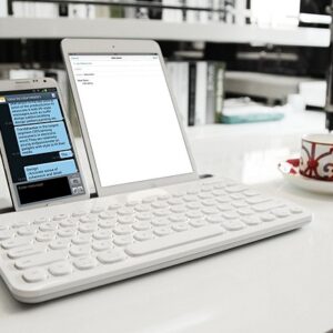 สุดยอดเทคโนโลยีล้ำสมัย Logitech Bluetooth Multi-Device Keyboard K480 แป้นพิมพ์สกรีน TH/EN (White) แป้นพิมพ์ไร้สาย ที่รองรับการใช้งานได้อย่างยอดเยี่ยม เพื่อให้คุณใช้งานได้อย่างลงตัว ไม่ว่าจะเชื่อมต่อกับ สมาร์ทโฟน หรือ แท็บแล็ต ก็สามารถใช้งานได้อย่างง่ายดาย