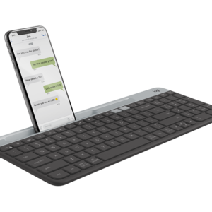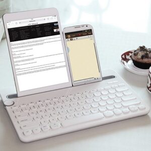 Logitech Bluetooth Multi-Device Keyboard K480 แป้นพิมพ์สกรีน TH/EN (White) คีย์บอร์ดไร้สายแบบบลูทูธ สำหรับคอมพิวเตอร์ แท็บเล็ต และสมาร์ทโฟน โดยสามารถเชื่อมต่อแบบไร้สายบนคลื่นบลูทูธความถี่ 2.4G สามารถใช้งานได้ดีในระยะ 10 เมตร ซึ่งสามารถใช้งาน อุปกรณ์ได้ 3 เครื่อง โดยสลับการใช้ระหว่างอุปกรณ์ได้อย่างไร้รอยต่อ ด้วยการหมุนลูกบิดไปยังเครื่องที่ต้องการ
