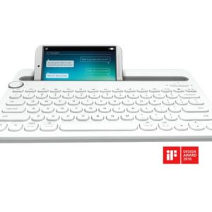 Logitech Bluetooth Multi-Device Keyboard K480 แป้นพิมพ์สกรีน TH/EN (White) มีร่องสำหรับวางอุปกรณ์ที่ทำมุมองศาพอดีกับสายตา ง่ายสำหรับการใช้งานร่วมกับแท็บเล็ตและสมาร์ทโฟน รองรับการใช้งานร่วมกับหลากหลายระบบปฎิบัติการ เช่น Windows, Mac OS, Android และ iOS มาพร้อมตัวอักษรสกรีนภาษาไทยเพื่อให้คุณใช้งานได้อย่างลงตัว