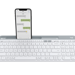 - คีย์บอร์ดไร้สายสำหรับคอมพิวเตอร์ แท็บเล็ต และสมาร์ทโฟน ดีไซน์กะทัดรัด พร้อมช่องวางอุปกรณ์