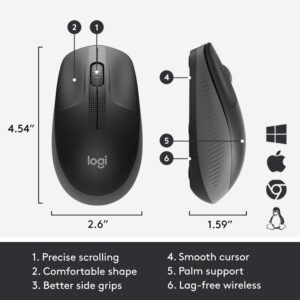 Logitech M190 คือเมาส์ไร้สายขนาดมาตรฐานที่มาพร้อมกับการออกแบบทรงโค้งที่จับสบายซึ่งไล่ไปตามส่วนโค้งตามธรรมชาติของมือขนาดกลางถึงขนาดใหญ่ คุณจะทำงานได้ด้วยระบบไร้สายและขยับเมาส์อย่างอิสระห่างออกไปได้สูงสุด 10 เมตร ระยะการเชื่อมต่อไร้สายและอายุการใช้งานแบตเตอรี่อาจแตกต่างกันไป ขึ้นอยู่กับสภาวะของผู้ใช้และการประมวลผล โดยไม่มีปัญหาความล่าช้าหรือสัญญาณขาดหาย คุณจะได้สัมผัสกับอายุการใช้งานแบตเตอรี่คุณภาพเยี่ยมที่ยาวนานถึง 18 เดือน ระยะการเชื่อมต่อไร้สายและอายุการใช้งานแบตเตอรี่อาจแตกต่างกันไป ขึ้นอยู่กับสภาวะของผู้ใช้และการประมวลผล การติดตามที่แม่นยำ และการเลื่อนทีละบรรทัดในราคาย่อมเยา